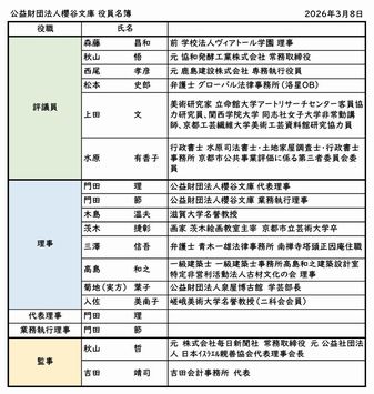 公益財団法人櫻谷文庫役員名簿 2026年3月8日現在